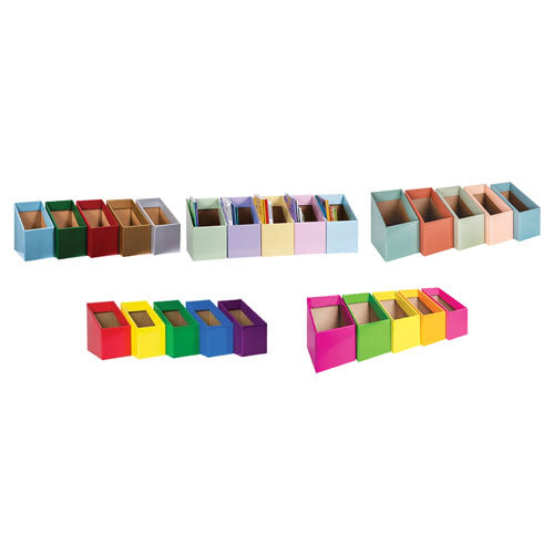 Keep your classroom organised and clutter-free with these sturdy classroom Book Boxes, designed for storing books, papers, and educational materials. Their generous size makes them perfect for classroom libraries, student work storage, or subject-specific organisation. These boxes help create a visually structured learning environment while ensuring books and resources remain easily accessible. Sold in packs of 5, these durable boxes provide a practical and space-efficient solution for teachers and students alike. Pair them with our Self-Adhesive Label Pockets for quick and clear identification of contents.