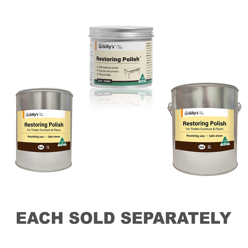 This polish is designed as a starter polish for new work or furniture that has just been stripped back. Restoring Polish will bring out the natural grain of the wood, feed the timber and give a good initial sheen. It is Step 1 of the Gilly?s 3 Step Waxing Process.