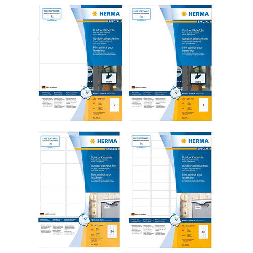 Conquer outdoor labeling tasks with ease using Herma Outdoor Film Labels, available in a pack of 40 A4-sized sheets in pristine white! Are you tired of labels that fade or peel in outdoor conditions? These outdoor film labels are your solution. Whether you're marking equipment, labeling plants, or creating signage for outdoor events, these labels offer unbeatable durability and weather resistance. Their A4 size provides ample space for detailed designs or extensive text, while their white background ensures optimal visibility. Say goodbye to weather-worn labels and hello to enduring clarity with Herma Outdoor Film Labels, your reliable companion for outdoor labeling