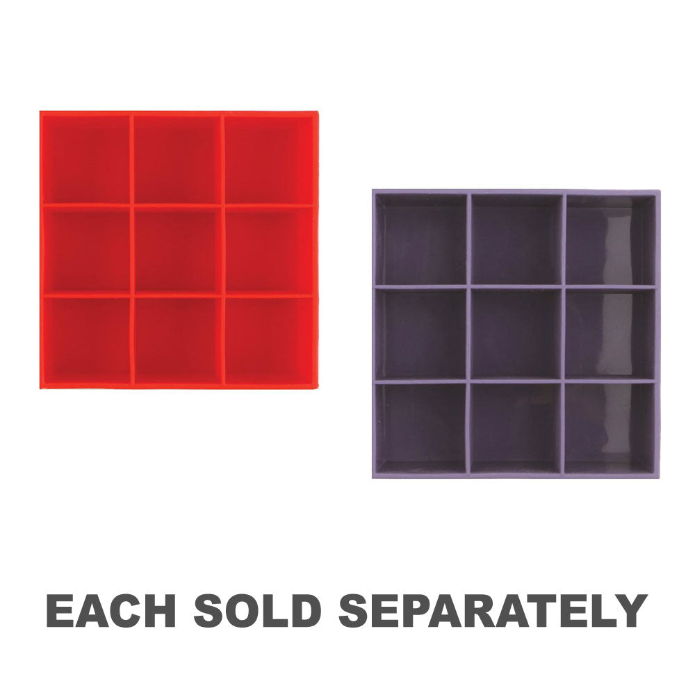 - Trays stack into a vertical cube to take less space in freezers than traditional ice trays