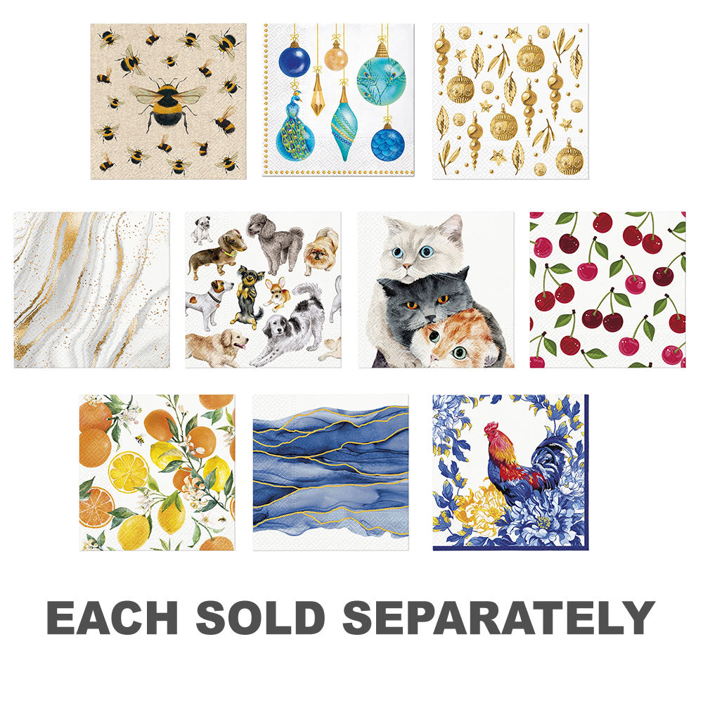 - Dimensions: 33 x 33 cm, pack of 20. The napkins are printed with environmentally friendly water based inks.