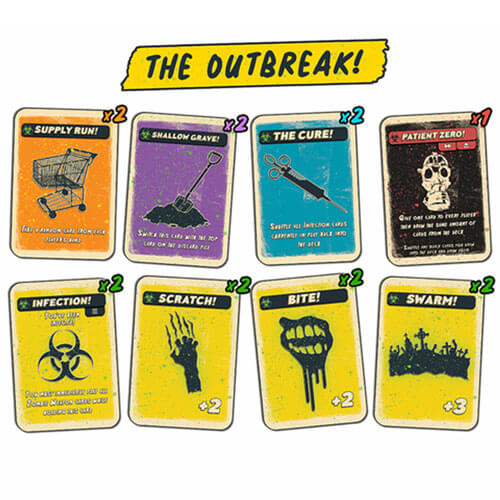 It is a game within your game of Psycho Killer. There are two infections in the deck, and if you pick them up, you are susceptible to zombie attacks. You will want to palm off the infection to your friends as soon as possible if you wish to survive!