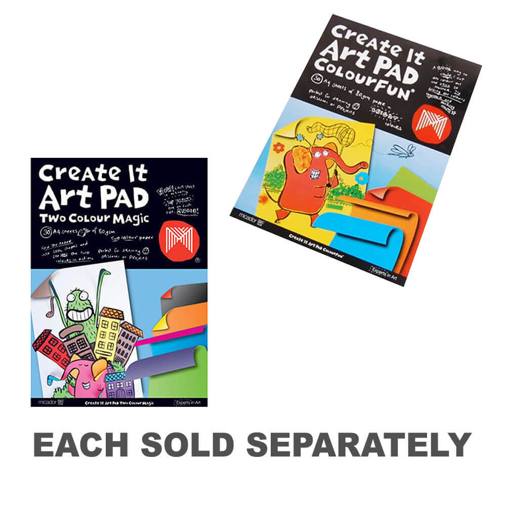 A4 kunstpuder med 30 lette tåreark af kvalitet, syrefrit papir, der er egnet til tegning af børn, scrapbog, håndværksprojekter og origami. 80 gsm. Fås i 3 forskellige stilarter. Colourfun Fem livlige farver (aqua blå, rød, orange, gul og grøn). To farve magi 10 farver, med en anden farve end hver side af arket (lilla/grøn, gul/orange, lyserød/blå, rød/sort og brun/hvid. Sort og hvidbog. Vekslende 5 ark hvidbog og 5 ark sort papir.
