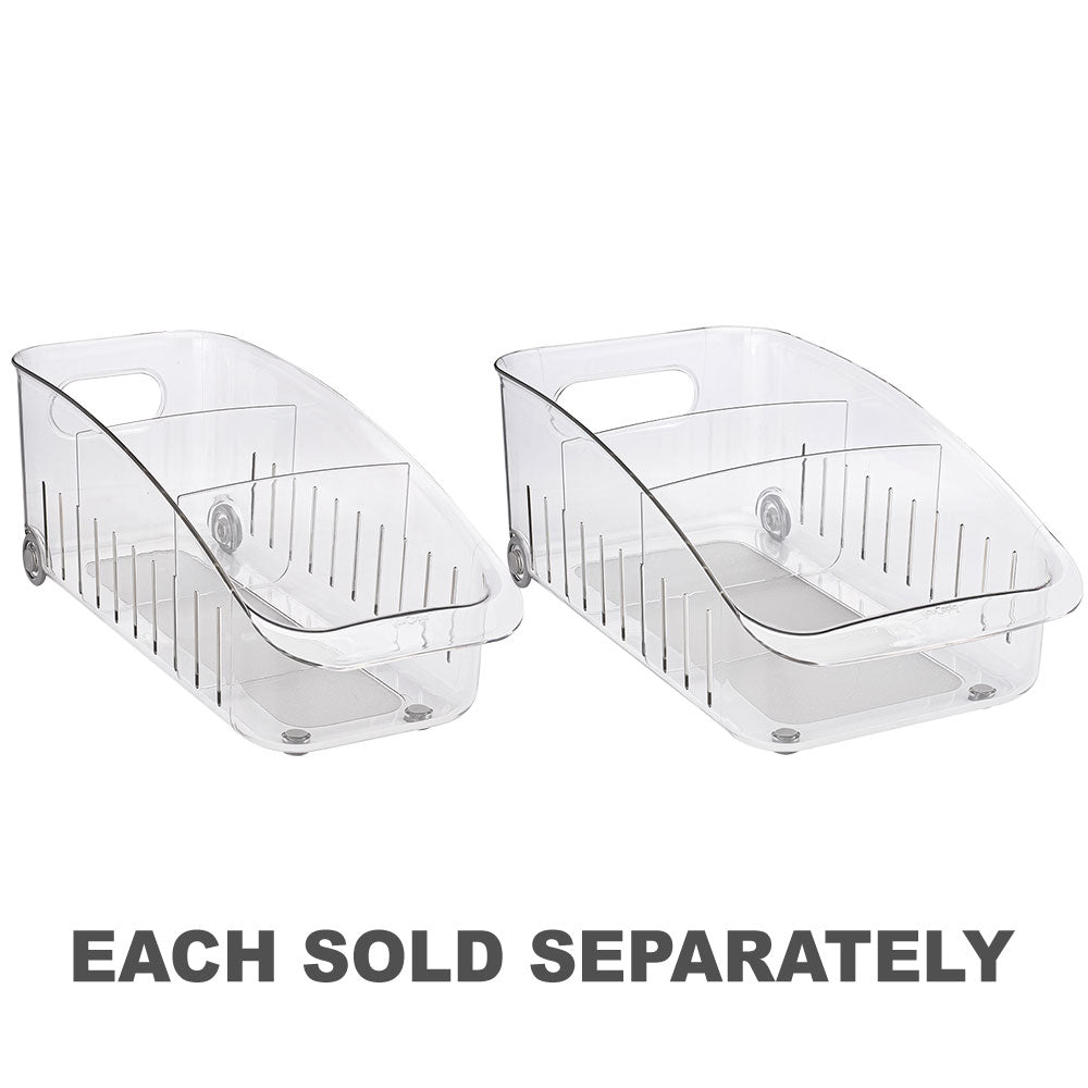 Organiser de højere og bulkere genstande i dit køleskab med udrulningskøleskabet fra YouCopia. Med justerbare opdelere til bedre at organisere dit køleskabsindhold, skal du nemt hente genstande fra yderligere ryg ved at bruge skuffens glatte hjul og robuste håndtag, så du kan trække genstande fremad uden at forstyrre alt i skuffen.