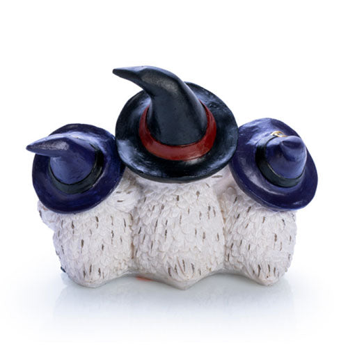 Verspielte Familie von Schneeeulen mit Hexenhüten. Die Federtextur und die schwarzen Fleckendetails sehen genauso aus wie das echte Tier. Hergestellt aus robustem Polyresin mit luxuriöser, schwerer Haptik.