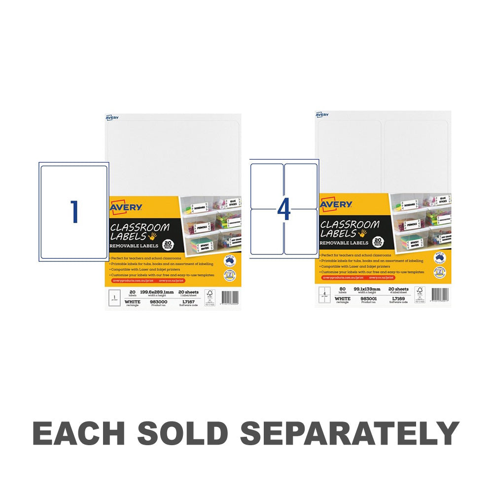 Avery entfernbares Klassenzimmer -Etikett 20pcs