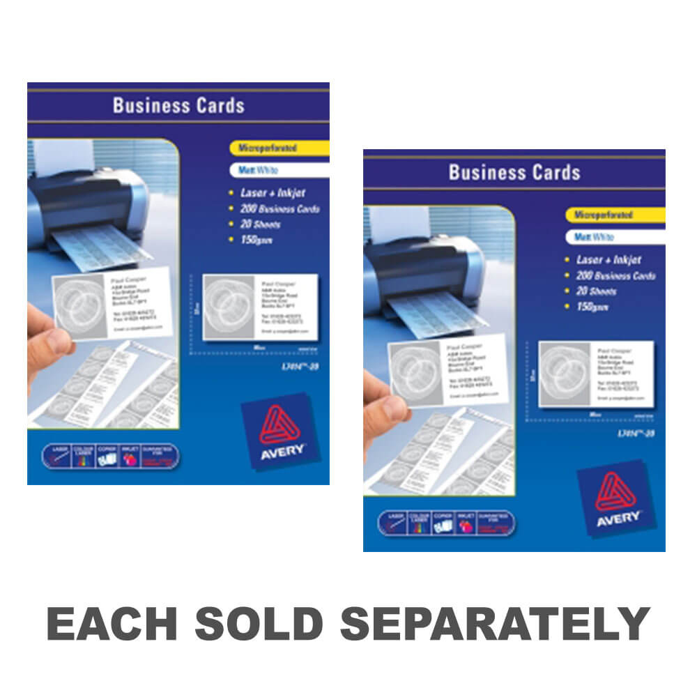 Avery Print Your Own Visitenkarten lassen sich ganz einfach entwerfen und direkt von Ihrem Heim- oder Bürodrucker aus drucken.