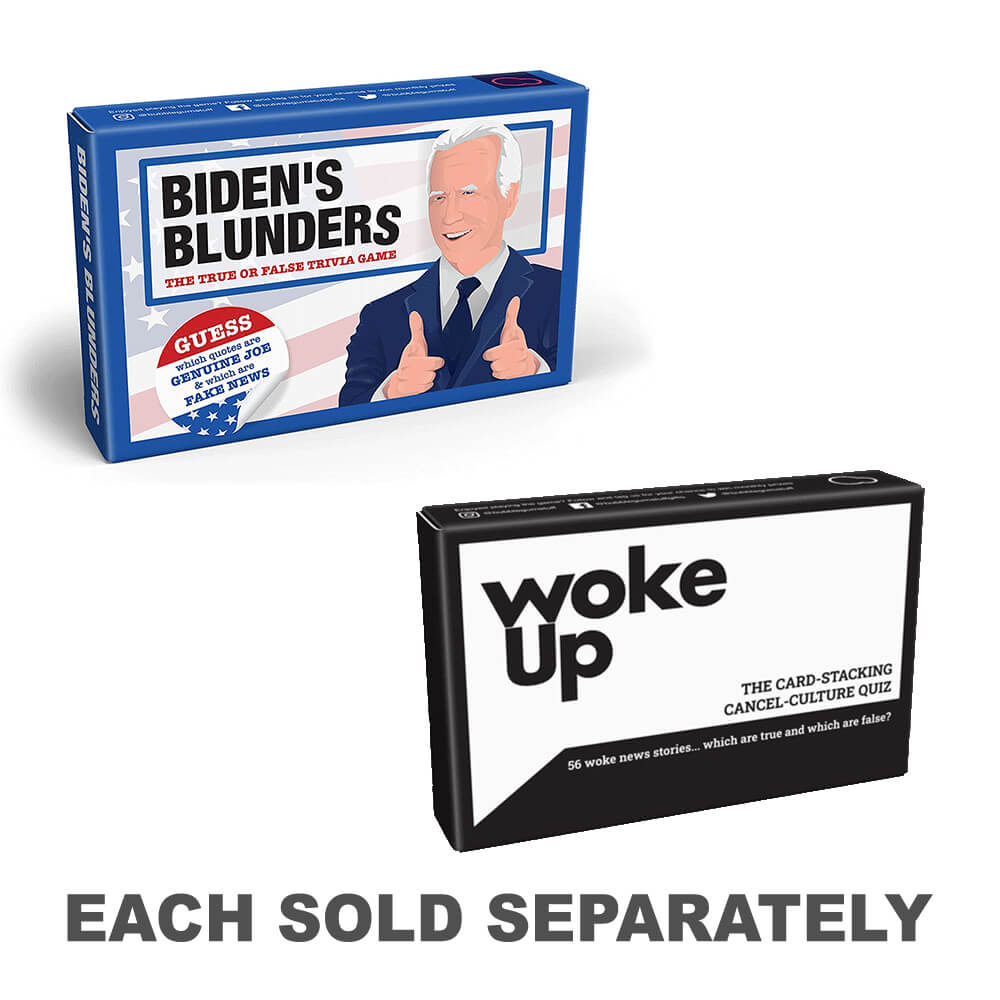 Trennen Sie die Wahrheit von den Lügen in diesem Fake-News-Präsidentschaftspartyspiel für Leute, die politisch inkorrekte, auf Zitaten basierende Trivia lieben. Die Hälfte der Karten enthält alberne Aussagen des schläfrigen Joe Biden und die andere Hälfte enthält Zitate aus anderen Quellen, die zu Fauxpas neigen … Es ist Ihre Aufgabe, herauszufinden, welche der Präsident gesagt hat und welche er nicht gesagt hat. Und da diesem Mann ein verbaler Ausrutscher nicht fremd ist, ist dieses Spiel ebenso knifflig wie schockierend. „Biden's Blunders“ ist ein einfaches Kartenspiel, das in puncto Spielspaß seinesgleichen sucht. Dieses Gruppenpartyspiel eignet sich perfekt für Dinnerpartys, Zusammenkünfte und Spieleabende und beweist, dass es tatsächlich möglich ist, sich bis an die Spitze zu schlafen!