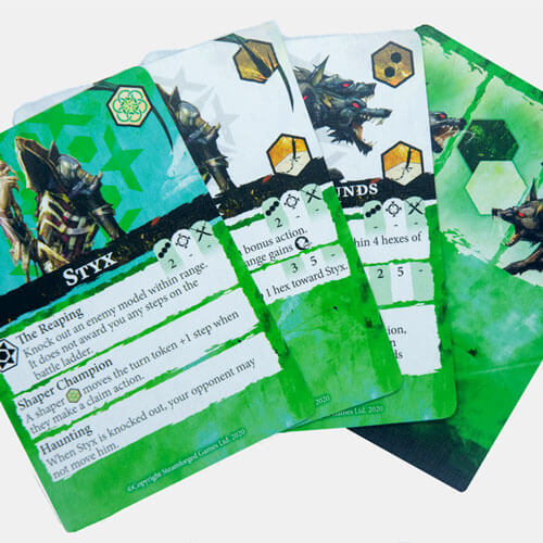 - Enthält 1x Styx, 2x Abyssal Hounds, 1x Styx-Banner, 3x Profilkarten