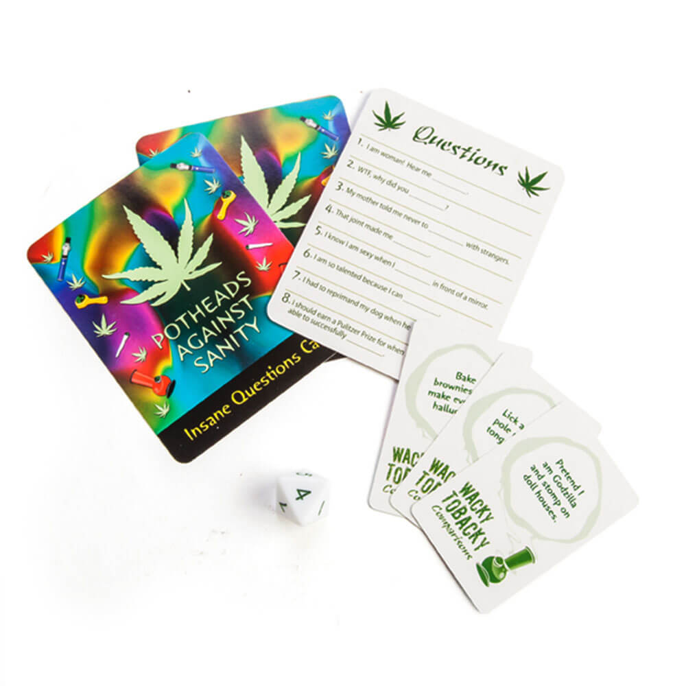- 96 verrückte Fragen und 107 verrückte Antwortkarten: eine 8-seitige Würfel- und Regelkarte