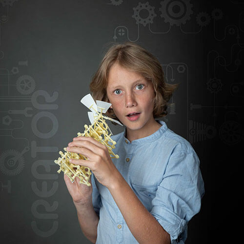 Bauen Sie dieses Wunder der Technik. Sobald es zusammengebaut ist, bewegt es sich ganz von selbst und nutzt dabei die Kraft des Windes.