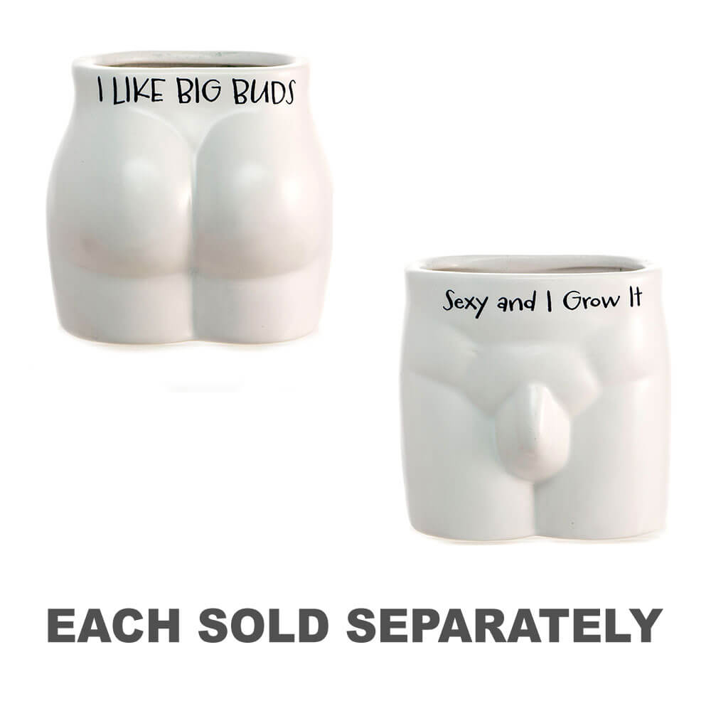 • This cheeky pot is shaped like the female anatomy, and featuring awesome graphic text that says 'I Like Big Buds', this funny plant pot is a great unique gift for friends on their birthday! Perfect as a desk accessory or silly talking point in the house, This pot is a fabulous way to add some fun to your foliage!