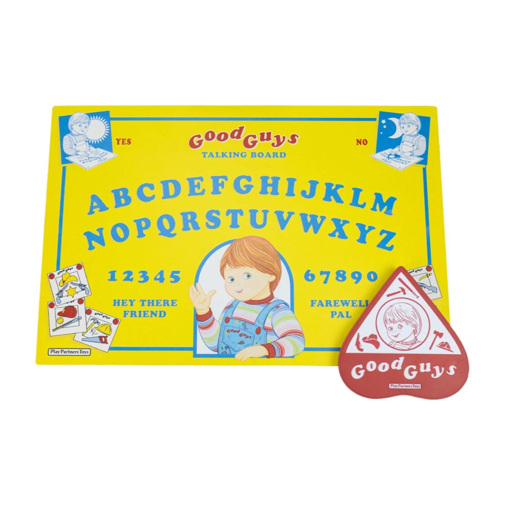 Officially licensed Good Guys Talking Board includes beautifully designed full color board and sculpted planchette. Packaged in a detailed themed box great for display!