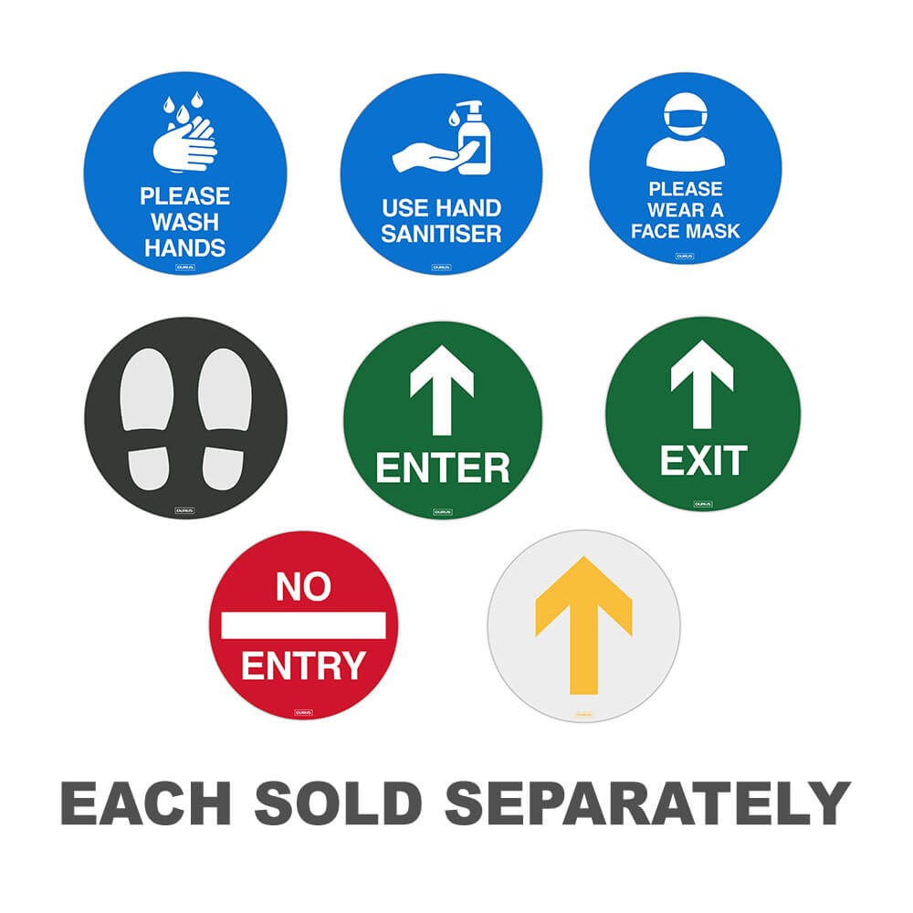 This DURUS Floor Decal is a great item to have at your place of business. It is made from adhesive PVC that is anti-slip, allowing you to direct visitors to wash their hands while on the premises. It can be used on most surfaces, including polished floorboards, concrete, tiles, and short pile carpet.