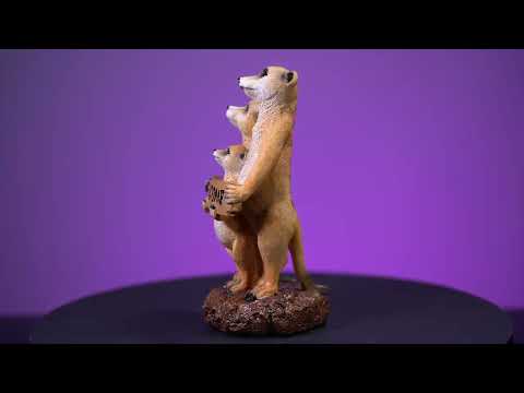Adorable family of meerkats holding a welcome sign. Fur texture and realistic details look just like the real animal. Made from sturdy polyresin with a luxurious, weighty feel. Measures 6 inches.