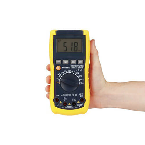 Perfect for the workshop as an an engine analyser as well as basic DMM. Full dwell angle measurement and tacho, with max / data hold and bright backlit LCD.