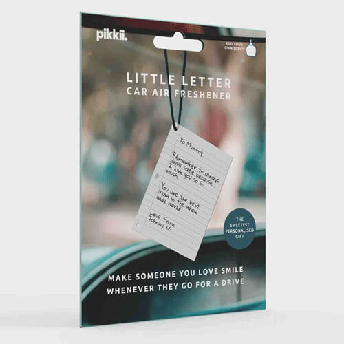 Draw a picture that will make them smile every time they go for a drive. Made from cotton paper, and free from plastic and all those harsh chemicals usually found in air fresheners, simply add your own scent so it smells like you (perfume, cologne, essential oil, etc) then use your choice of pens, pencils or markers to doodle something meaningful on the blank canvas.