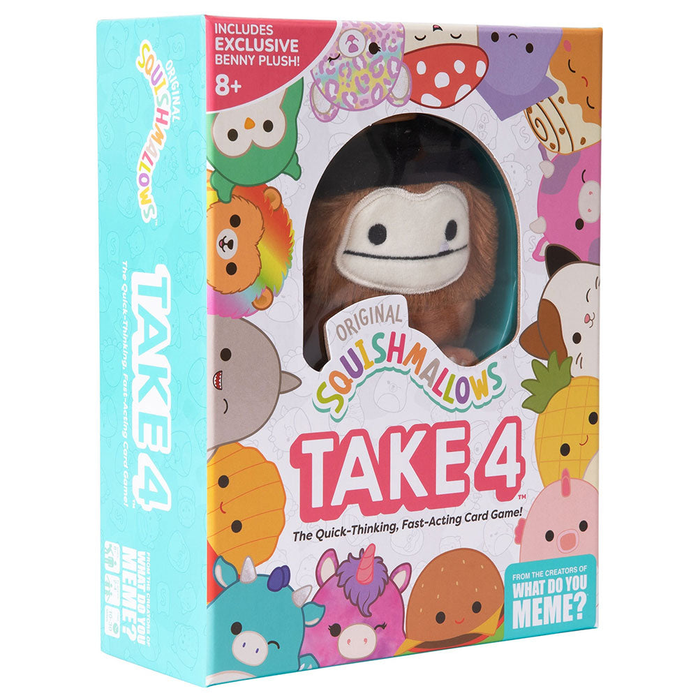 In each round, 4 cards are placed face-up in the center of the group. Players compete to get 4 cards of the same Squad. Be the first to build a full Squishmallows Squad to win!