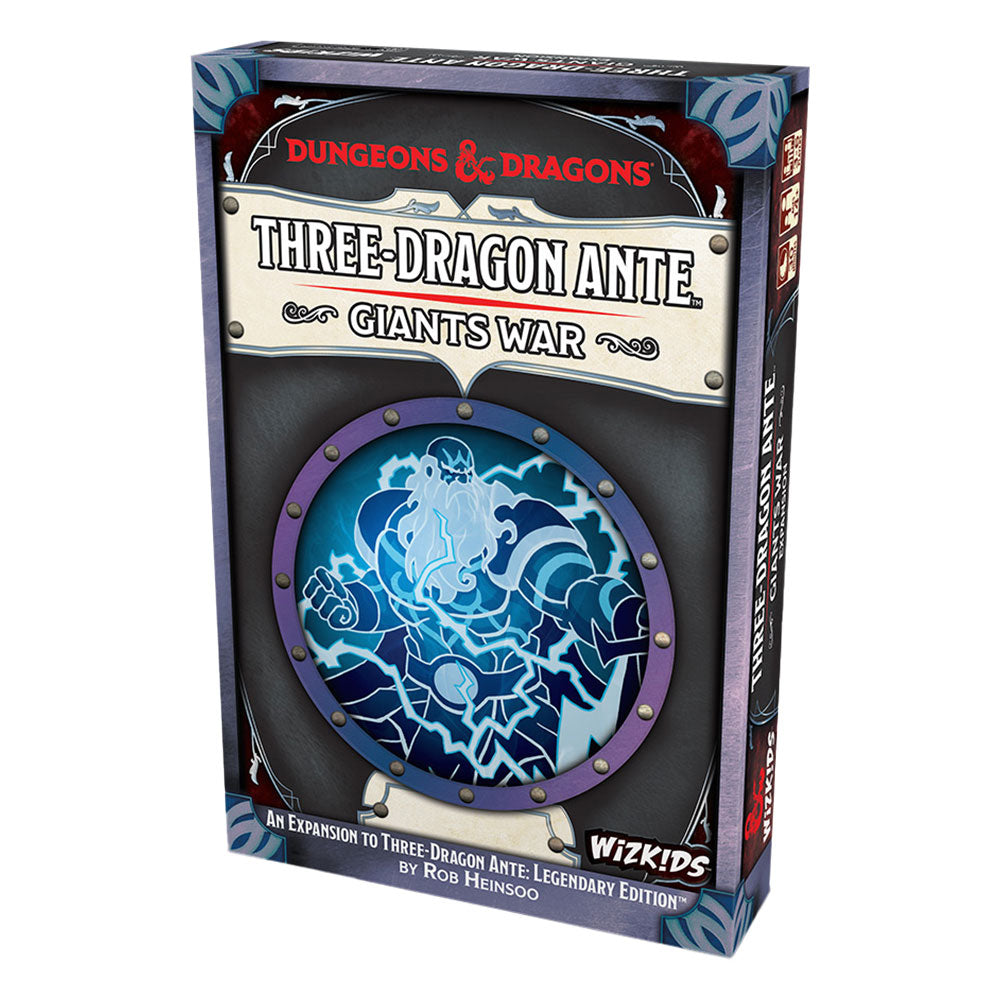Long ago, dragons and giants fought a thousand-year war and the human survivors commemorated the battles by adding the giants to their high stakes card game of luck and skill, THREE-DRAGON ANTE! With over 100 new cards THREE-DRAGON ANTE: Giants War adds a whole new way to play the classic Dungeons & Dragons standalone card game! You'll mix in new Giant suits, while you split the stakes in two: the Dragon Stakes and the Giants Stakes. Players fight for the stakes where their flight is strongest, giving you new routes to victory! There is also a new way to find Legendary Dragons and the new Giant Gods. New powers let players draw powerful cards from the Legendary deck!