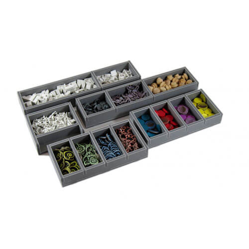 • Este inserto de la Campaña 3 está diseñado para ser compatible con Spirit Island® y la expansión Branch and Claw®. El diseño proporciona almacenamiento eficiente y un juego mejorado. Las bandejas se pueden utilizar durante el juego y ayudan enormemente en los tiempos de preparación y retirada.