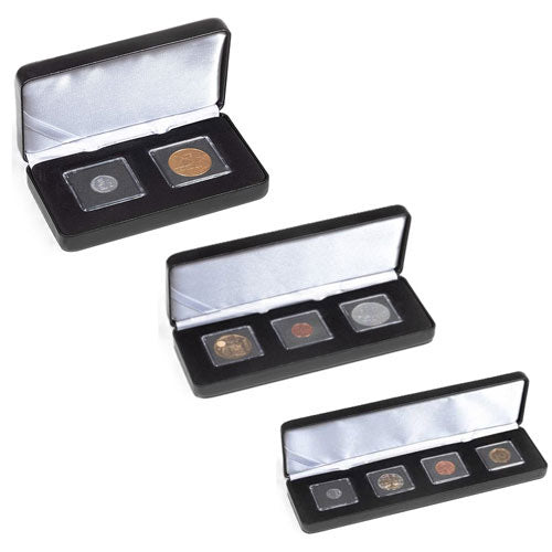 This sleek black Quadrum Coin Capsule Etui is a must-have for any serious coin collector. With its sophisticated design and practical features, it offers the perfect solution for storing and showcasing your valuable coins. Each coin is safely nestled within its own protective capsule, safeguarding it from damage and preserving its pristine condition. Say goodbye to cluttered drawers and flimsy containers - with this elegant etui, you can display your collection with pride and peace of mind. Elevate your collecting experience with this stylish and functional accessory!