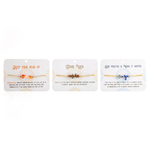 - 6 colores y piedras variados: turquesa, turmalina, cuarzo, cornalina, ojo de tigre, lapislázuli.