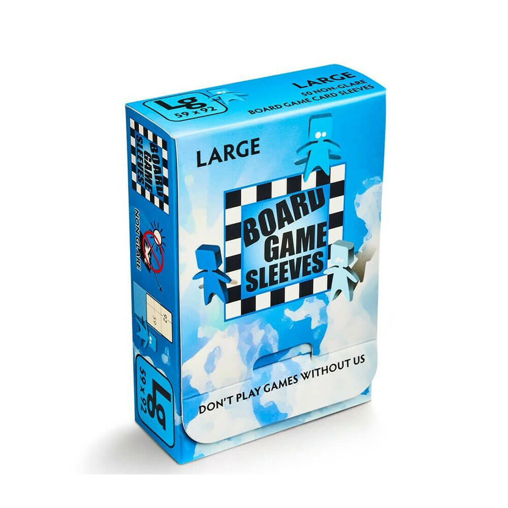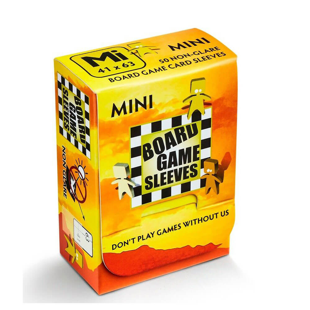 50 maniche per carte da gioco non gallare per carte che misurano fino a 65 x 100 mm (29/16 x 315/16 "). Questa dimensione della carta è utilizzata principalmente in 7 meraviglie, ma si trova anche in giochi come la ricerca della felicità, del colpo di stato e Carico noir.