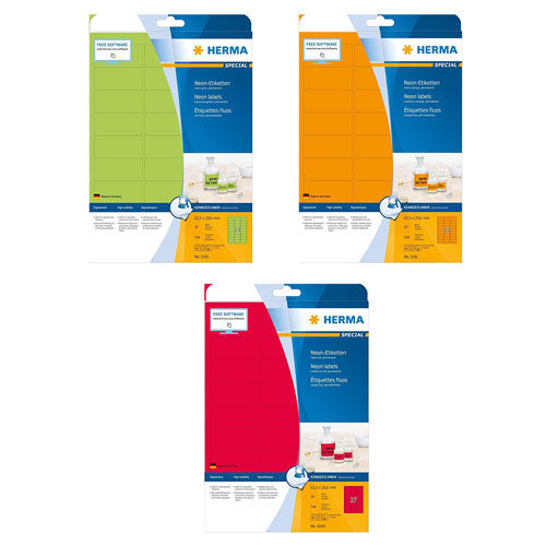 Illuminate your labeling tasks with Herma Luminous Neon Labels! This pack includes 20 A4-sized labels in vibrant neon colors, each measuring 63.5x29.6mm, offering high visibility and impact. With a luminous finish, these labels stand out in low-light conditions or crowded environments, making them perfect for attention-grabbing signage, event promotion, or creative projects. Whether for business presentations, party decorations, or arts and crafts, these luminous neon labels provide versatility and excitement for all your labeling needs. Get ready to shine bright with Herma Luminous Neon Labels!