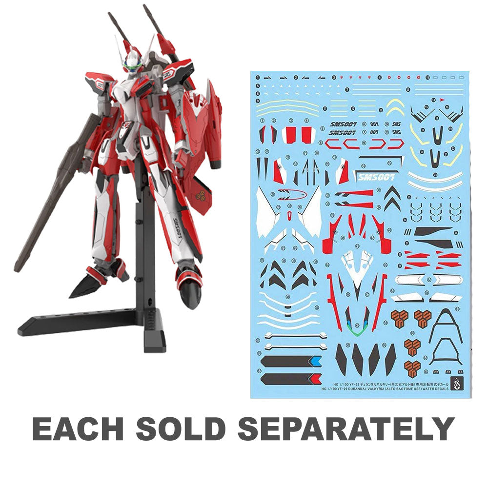 La Valkyrie Durandal YF-29 è volata da Alto Saotome in "Macross Frontier" è la nuova voce nella gamma Model-Kit HG "Macross" di Bandai! Questo kit adotta il "cambio di scelta rapida", che semplifica la sequenza di trasformazione utilizzando parti di sostituzione, sfruttando appieno la facilità di assemblaggio e l'ampia gamma di movimento unica per la serie HG. Il kit riproduce fedelmente la bellezza curva delle ali in avanti in modalità combattente e la caratteristica silhouette in modalità Gerwalk. La sua modalità batroide esprime anche la sua caratteristica linea del corpo acuto. Le spalle presentano un giunto estraibile per una gamma di movimento ampliata e un asse a tre vie di movimento nel torace consente una vasta gamma di movimento verso la parte anteriore, posteriore ed entrambi i lati. I schizzi missili sulle spalle e sulle gambe possono essere distribuiti e il coltello può essere conservato nello scudo; Sono anche incluse parti espressive a mano
