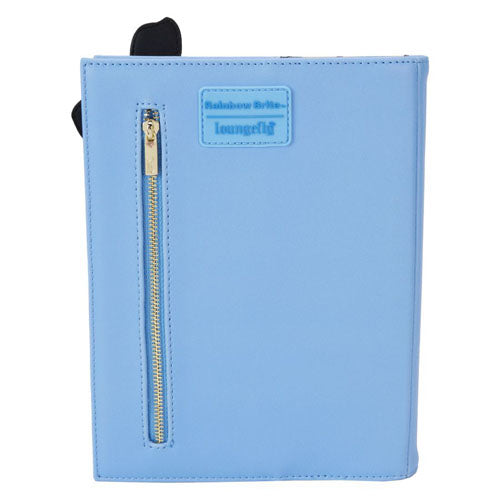 The Loungefly Rainbow Brite Cosplay Journal is made of vegan leather (polyurethane) and includes shiny gold hardware. Additional features include applique and printed details.