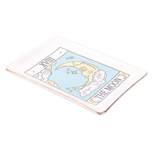 This tarot-inspired trinket dish is perfect for holding jewellery, keys, and small treasures. Featuring an elegant The Moon design with gold edging, this dish will add a touch of mysticism to any desk, vanity or side table. Designed as part of the Vintage Tarot collection of mystical gifts and home decor.