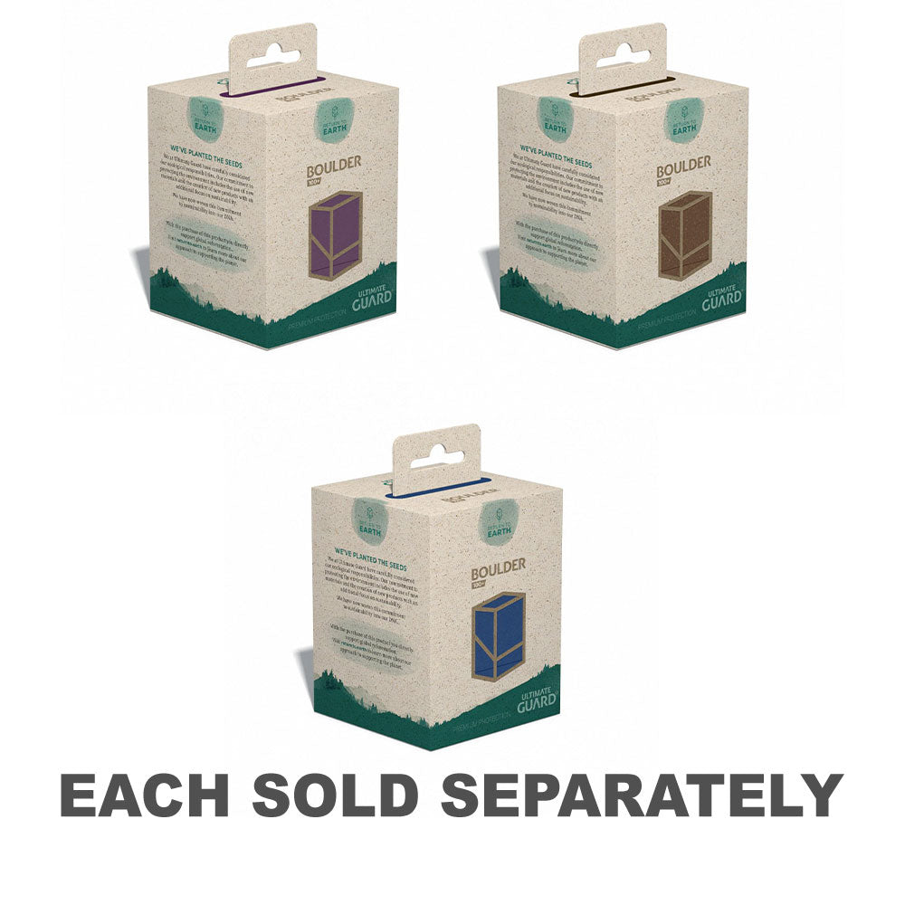 Developed and produced in Germany, this handy and solid Boulder 100+ with super-easy opening consists of 97% renewable resources, with a FSC certified grass paper packaging. The deck case is recyclable and holds up to 100 double-sleeved or 120 single-sleeved cards when using Ultimate Guard Sleeves.