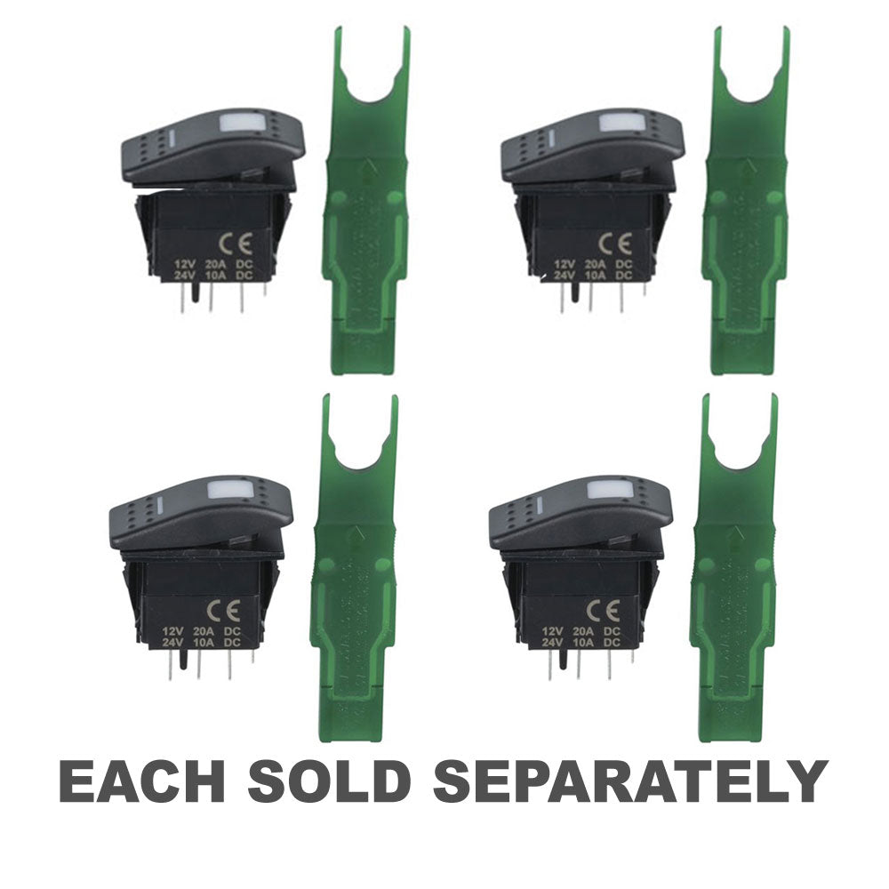 これらは、最近70〜100フィートの高級モータークルーザーのコックピットで見た見栄えの良いロッカースイッチです。 4WD、RV、Caravan、またはその他のアプリケーションでも見栄えがよくなります。供給されたベーススイッチ(12V 20A、24V 10Aの定格)には、二重レルド照明(OFFが低く、ONの位置が高く)、標準ロッカーカバー、およびアプリケーションへのスイッチをカスタマイズする標準の範囲のデカールが付属しています。典型的なデカールは、次のシンボルです。フロントガラスワイパー、ホーン、ヒーターなど。これらのデカールを含む数十があります。