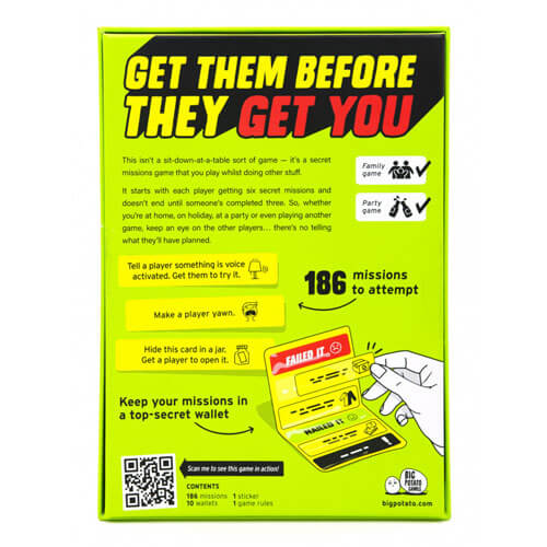 さまざまなシナリオの負荷で試みることができる180を超えるミッションがあるため、これは大人とティーンエイジャー向けのパーティーゲームの1つです。まず、各プレイヤーに6つのミッションカードが付いたミッションウォレットが与えられます。