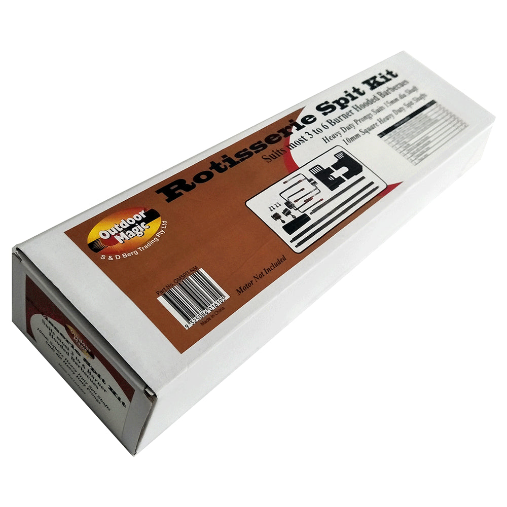 Rotisserieパックは、ほとんどの3〜6個のバーナーフード付きバーベキューに適しています。ヘビーデューティープロング100mmおよび90mm x 5mm diaワイヤ。最大15.6mm Diaのシャフトを摂取します。ヘビーデューティスピットシャフト10mmの正方形のシャフトの長さ(長さ2 x 450mm、1 x 300mmオフx 300mm)を使用すると、総シャフトの長さは750mm、900mm、または1200mmになります。