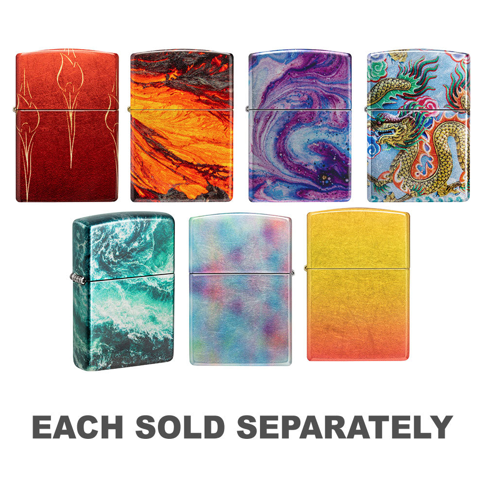 Zippo Dragon 540 Fusion Design Lighterは、すべての金属構造から作られています。防風設計はほぼどこでも機能します。最も人気のある2つのインプリント方法のまったく新しい進化。きらめくメタリック要素と洗練された半透明のカラーパレット、融合プロセスの特徴は、独自の540カラーテクノロジーと力を合わせて、すべての側面のライターを包み込み、シームレスで虹色の、絶対に素晴らしい最終結果を包み込みます。この鮮やかなドラゴンのデザインは、赤い幾何学的な背景の上に渦巻き、片側に沿ったロゴによって補完されます。