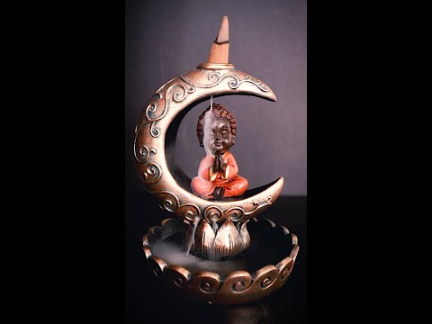 - Achterstroom wierookbrander in de vorm van baby Boeddha mediteren in een halve maan.