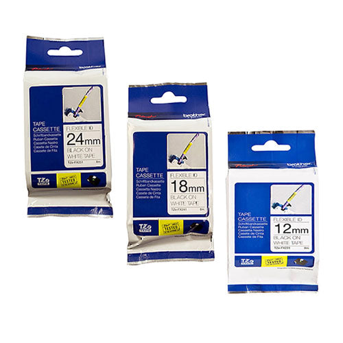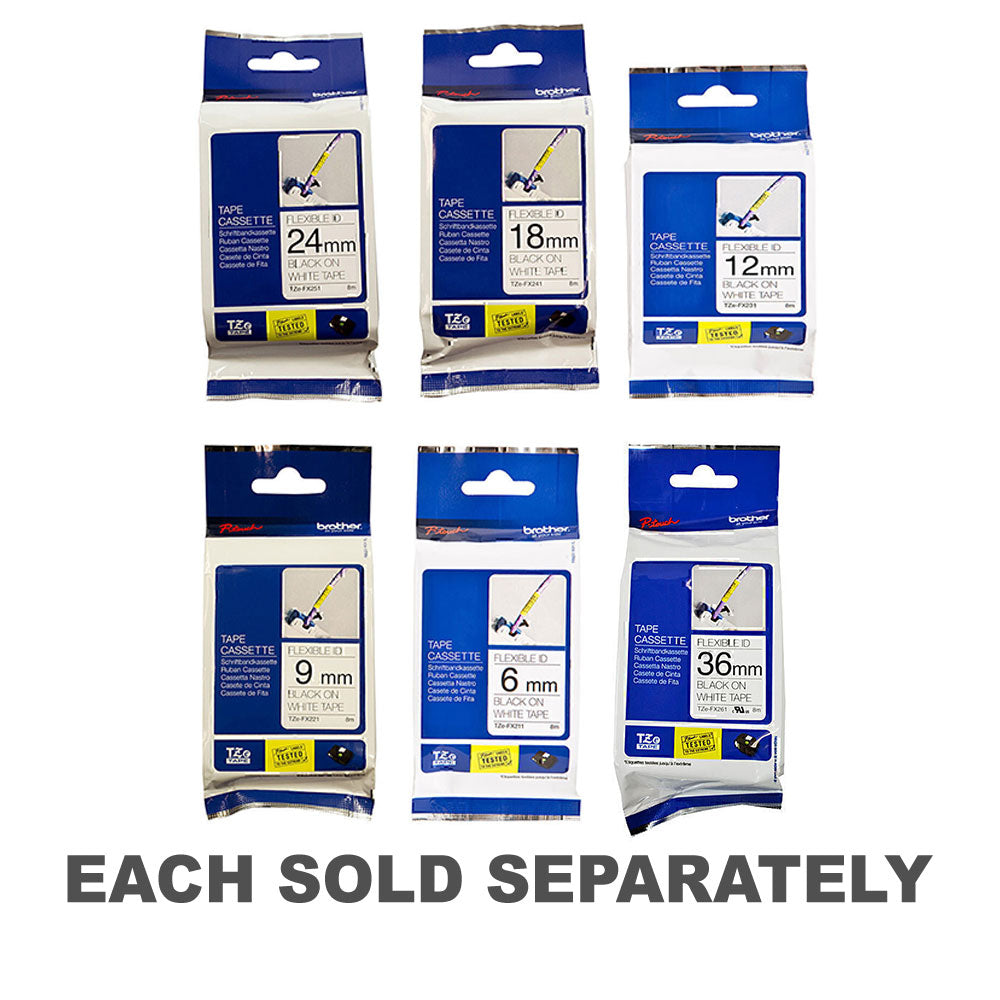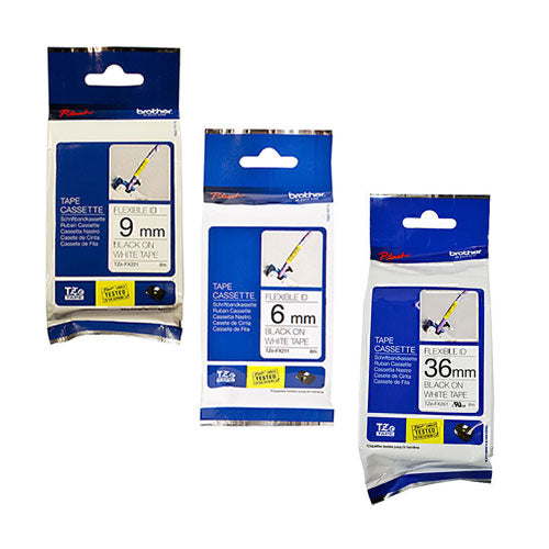 • Label gebogen oppervlakken met broer flexibel zwart op witte tape