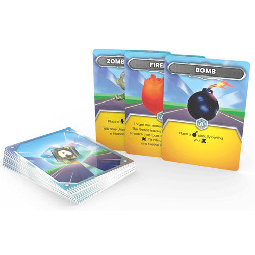 • 2 Dice, 8 Reference Cards, 8 Team Markers, Token Bag, Rulebook, and Racing Guide