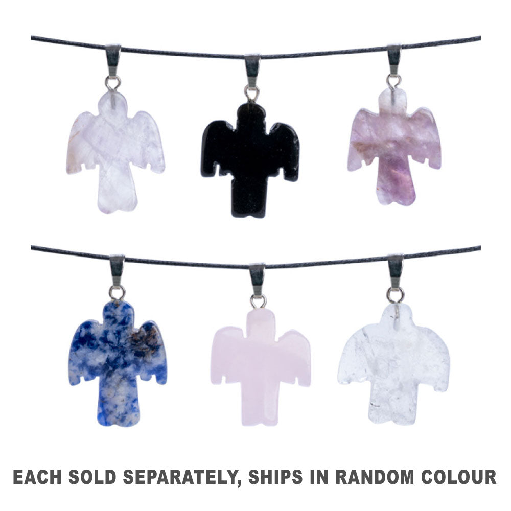 Lieve engel hanger om je te begeleiden en te beschermen. Item kan variëren tussen 6 edelstenen: Amethyst, Rock Quartz, Rose Quartz, Sodalite, Opalite, Black Obsidian ..