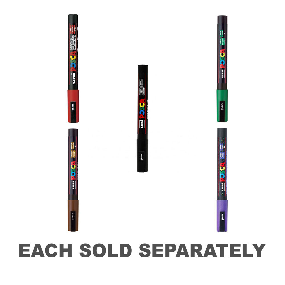 Deze POSCA-poster marker heeft pigmenten op waterbasis die kunnen worden gemengd wanneer het nat of bedekt wanneer ze droog zijn. Het heeft een fijne bullet -tip waarmee je lijnen kunt tekenen die van een afstand kunnen worden gelezen. De inkt produceert ondoorzichtige resultaten die na verloop van tijd niet vervagen.