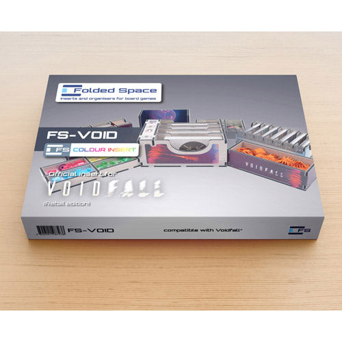 Official full colour insert compatible with Voidfall Retail Edition. The design provides both efficient storage and improved game play. Many of the trays can be utilised during the game, and they greatly aid set-up and clear-away times. The boards and rulebooks act as a lid on top of the trays.