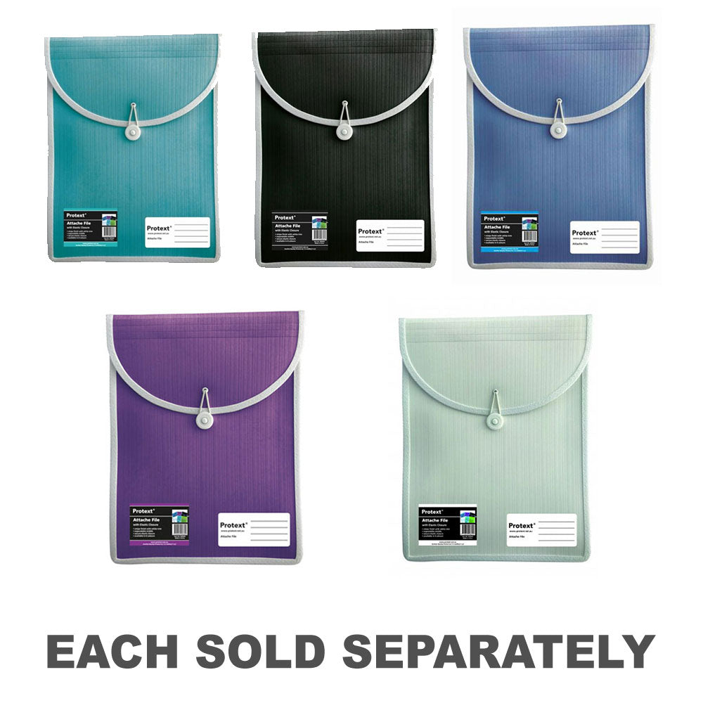 Protext Attache -filer har stripefinish med stilig hvit trim. Utvidbar Gussett passer til en rekk av kopipapir. Sikker elastisk lukking. Trykt panel foran for å detaljere innhold