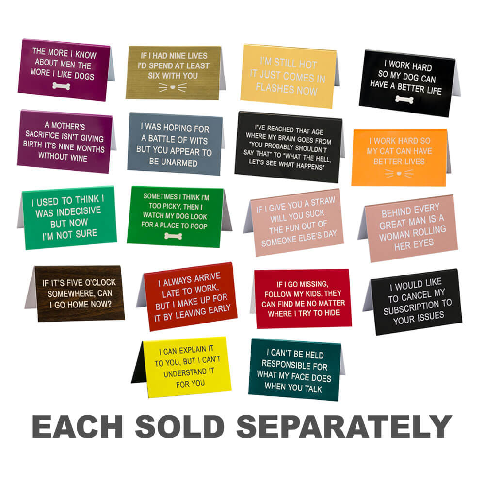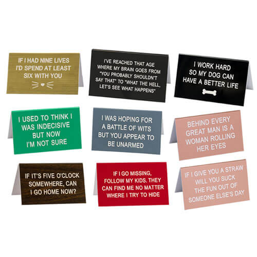 - Det morsomme sier hva? Over Hill Desk -skiltene tilbyr den perfekte kombinasjonen av tørr humor og ikonisk vidd.