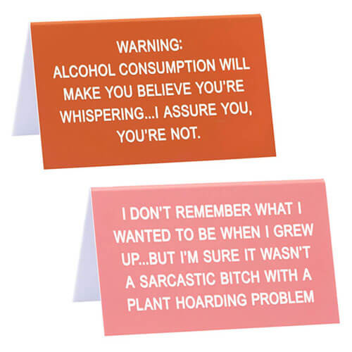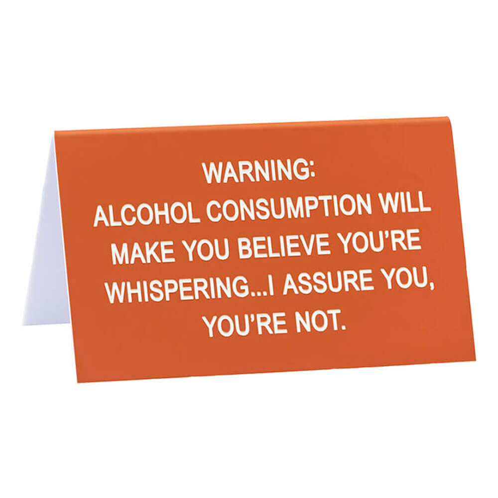 Bryt opp monotonien av arbeidet og ta med noen LOL -er til kontoret med dette vittige skrivebordet fra Say What?. Bildetekst lyder: 'ADVARSEL: Alkoholforbruk vil få deg til å tro at du hvisker ... Jeg kan forsikre deg om det, du er ikke'.