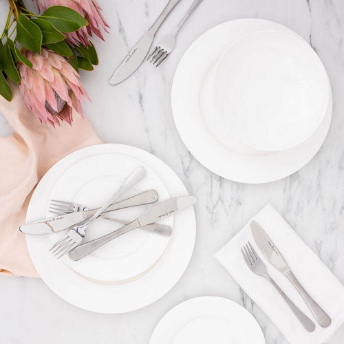 Wilkie Brothers Cuisine er laget av høy kvalitet ny beinporselen som er lett, sterk og holdbar. Den superhvite porselen er designet i klassiske og tidløse former, og kan blandes og matches for å passe til ethvert hjem eller anledning. Hver brikke er oppvaskmaskin, fryser og stekeovn for enkel pleie og vedlikehold.