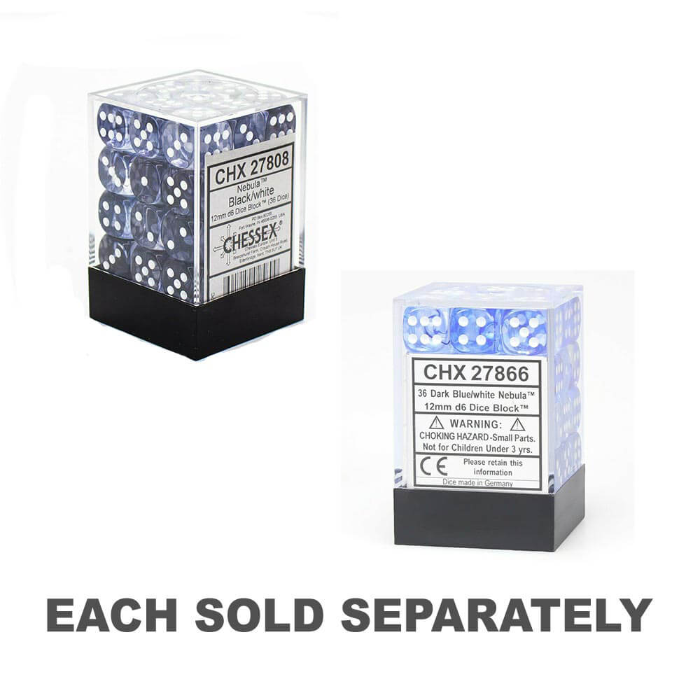 • Mgławica 12 mm D6 Chessex Block (36 kości) - czarny z białymi pipsami