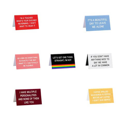 Rozbij monotonię pracy i przynieś do biura trochę LOLS z tym bordowym znakiem biurka z Say Co?. Podpis brzmi: „Mam wiele osobowości i żaden z nich jak ty”. Produkt mierzy 11,5 cm x 7 cm.