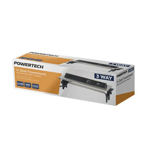 3-Way in Desk Mains Powerboard with USB HDMI and Ethernet