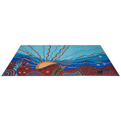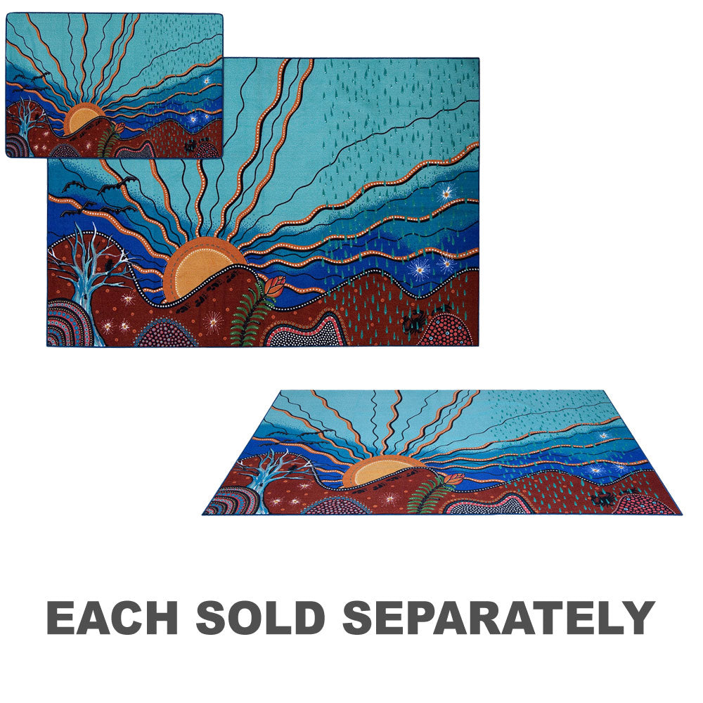 Created exclusively for Elizabeth Richards the Indigenous Seasons Rug gives you the opportunity to showcase an original piece of Indigenous art in your classroom. The Seasons classroom rug will remind children how important it is to listen to the land by telling the story of the four seasons. The importance of the seasons on Country, and the respect for each season held by First Nations people.